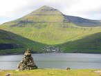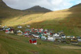 Bag bygden tordner Færøernes højeste bjerg Slættaratindur (882m) sig op.